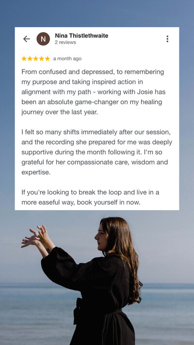 I can not say enough positives about Josephine. I do not recognise who I am now from who I was before encountering Josephine's sessions over a year ago.